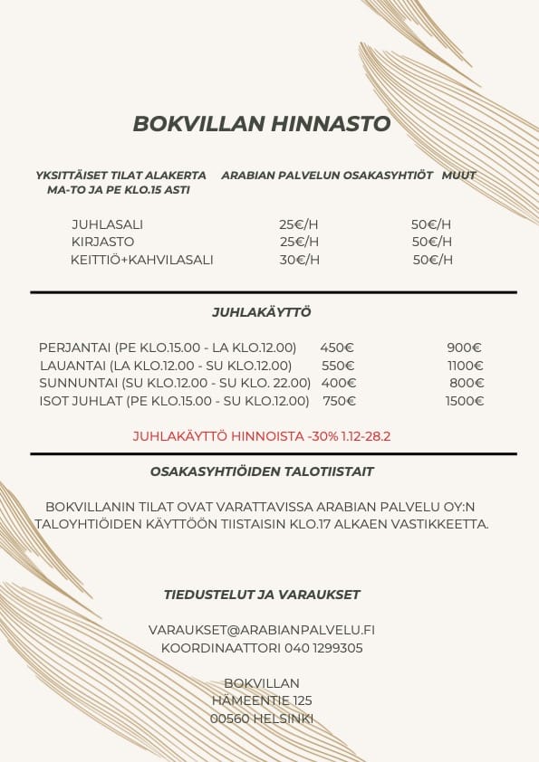 BOKVILLAN HINNASTO